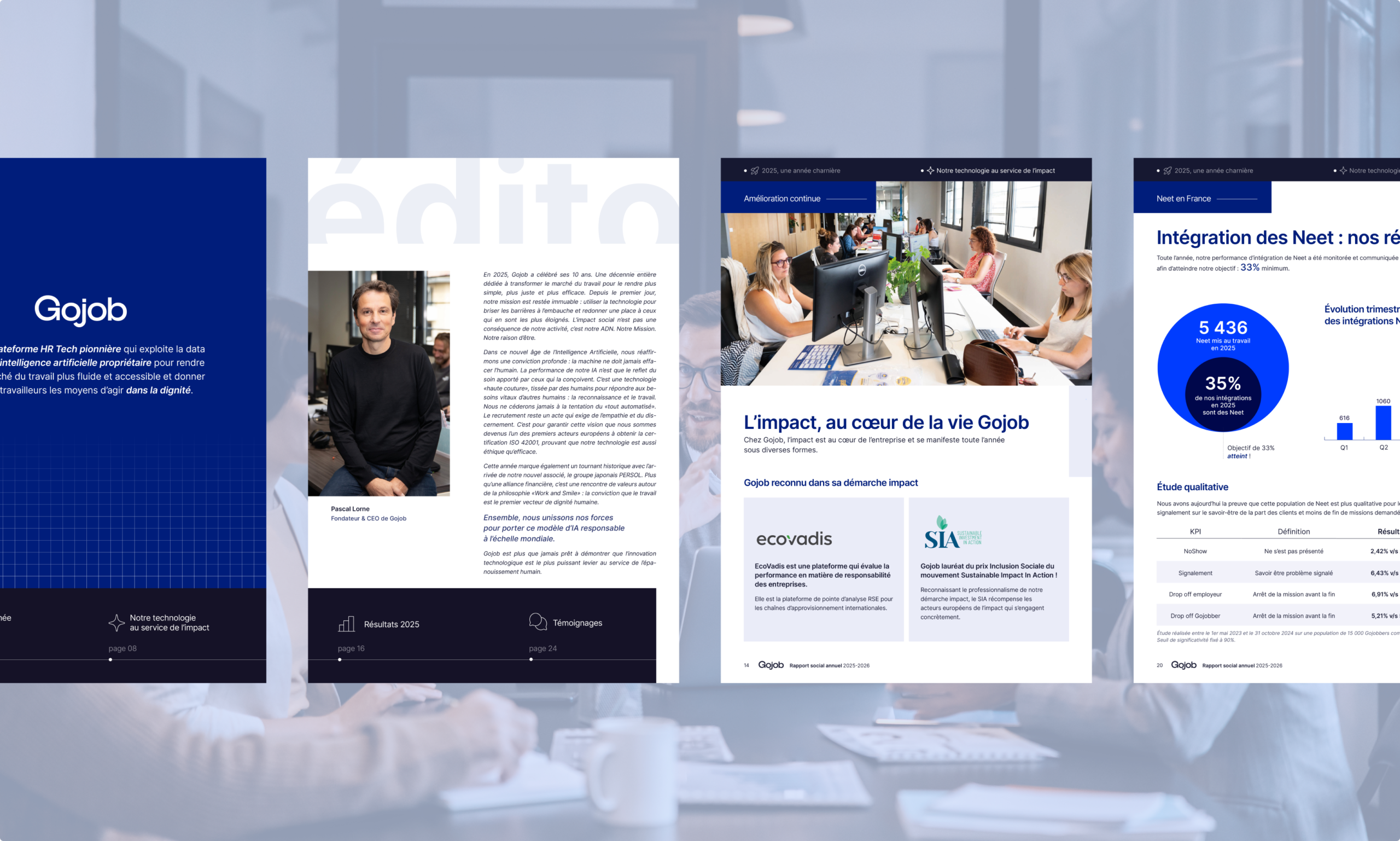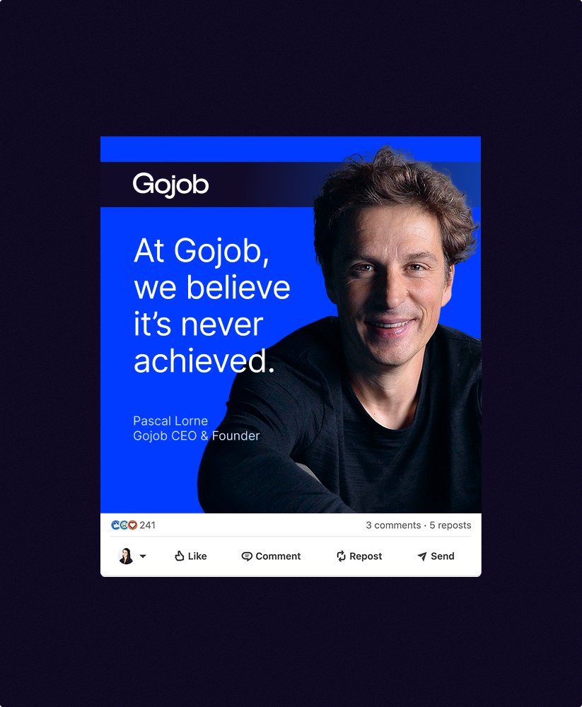 Une fois les fondations posées, le travail s’est concentré sur la dimension corporate. L’objectif était d’exprimer plus clairement ce que Gojob est devenu : une plateforme technologique au service de l’emploi, capable d’opérer à grande échelle tout en restant accessible.