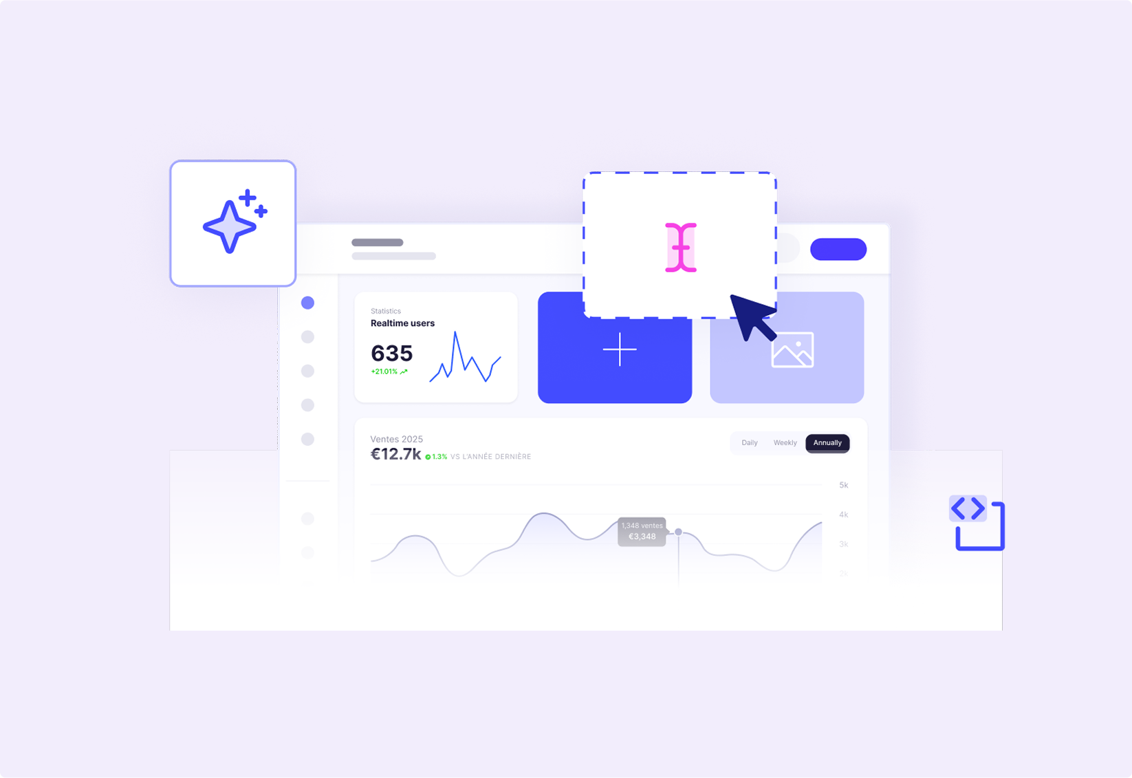 Des assets graphiques sur mesure viennent compléter l’expérience : illustrations, pictogrammes et éléments visuels modulaires renforcent la cohérence de l’ensemble. Pensés pour clarifier le propos et rythmer la lecture, ils traduisent visuellement l’univers d’Ottho , à la fois pédagogique, moderne et accessible, tout en soutenant la compréhension des concepts clés du No Code.